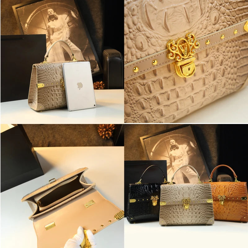 Refined and sophisticated, the Crocodile Leather Luxury Shoulder Bag blends timeless craftsmanship with modern elegance. Expertly made from 100% genuine split cowhide Leather, the Crocodile Leather Luxury Shoulder Bag features a premium crocodile print texture that delivers high-end style and lasting durability. Designed with a structured trapezoid silhouette, soft handle, and adjustable strap, the Crocodile Leather Luxury Shoulder Bag offers the perfect balance of fashion and functionality. Inside, a spacious main compartment with zipper and phone pockets keeps essentials organized — ideal for work, travel, or daily sophistication.
